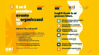 Cerchiamo giovani tra i 18 e i 30 anni per immaginare e realizzare nuove attività nei circoli NOI: eventi, serate, laboratori, spazi e nuove idee. Cosa aspettarsi– Entrerai a far parte di un gruppo di 21 giovani;– Potrai creare eventi, proporre attività e trasformare gli spazi del tuo circolo;– Lavorerete insieme per progettare nuove iniziative;– … Leggi tutto Call Giovani: “e se il prossimo evento lo organizzassi tu?”